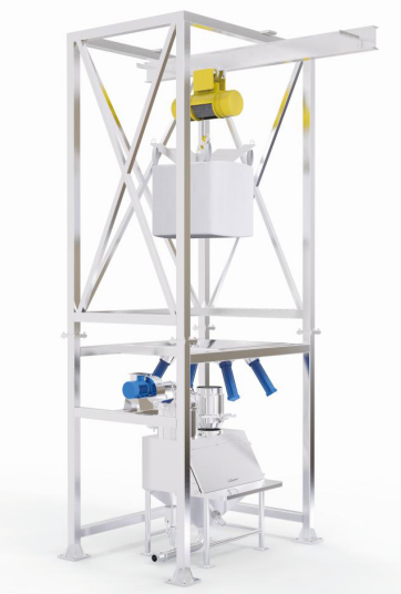 噸包拆包機(jī)采用設(shè)備自帶的電動(dòng)葫蘆、叉車、行車進(jìn)行物料提升,有效降低了人工勞動(dòng)強(qiáng)度,拆包處理量大,400KG~3T均可。